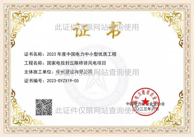 國優(yōu)證書:國家電投封丘陳橋驛風電項目